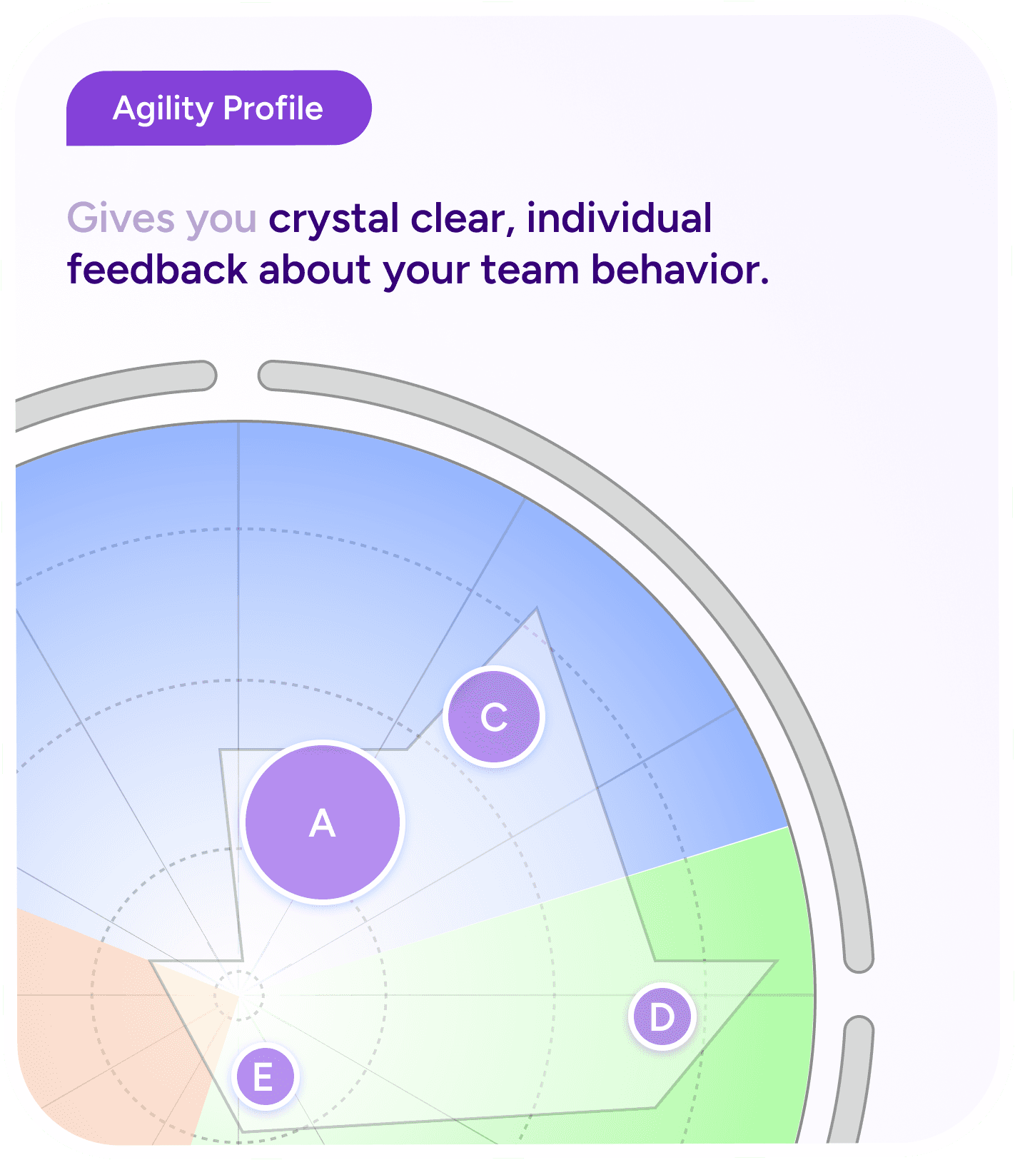 The Agility Profile presents how a group member assesses their behavior in the team and is assessed by others. The report is used for individual feedback to set development goals.