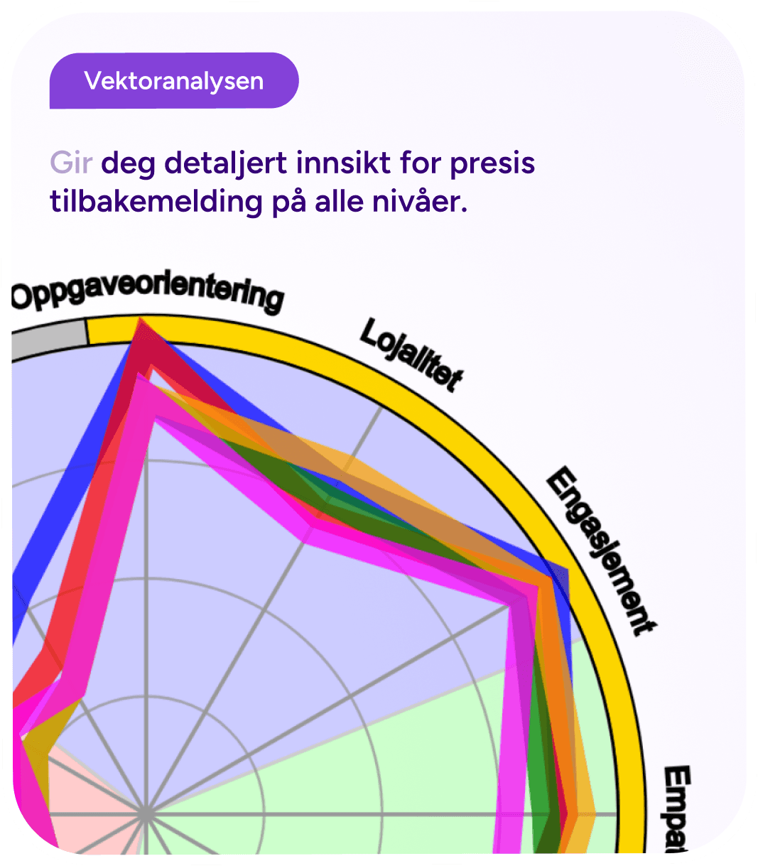 Vektor analysen gir en detaljert oversikt gitt på tolv sentrale vektorer i SPGR atferdsrom. Denne brukes for tilbakemelding på ulike nivå (individ, team og kultur), fremstilling av forskningsdata og til evaluering av mål- og utviklingsarbeid i team.