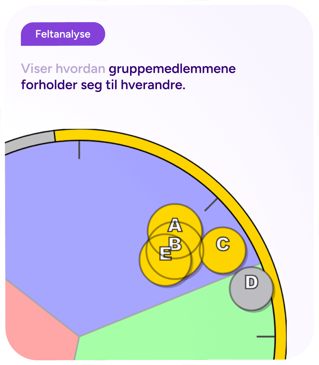 Feltanalysen viser hvordan gruppemedlemmene forholder seg til hverandre. Den visualiserer gruppens dynamikk – hvem som har hvilke roller, hvordan makt og innflytelse er fordelt, og hvordan medlemmene oppfatter gruppen på ulike måter.